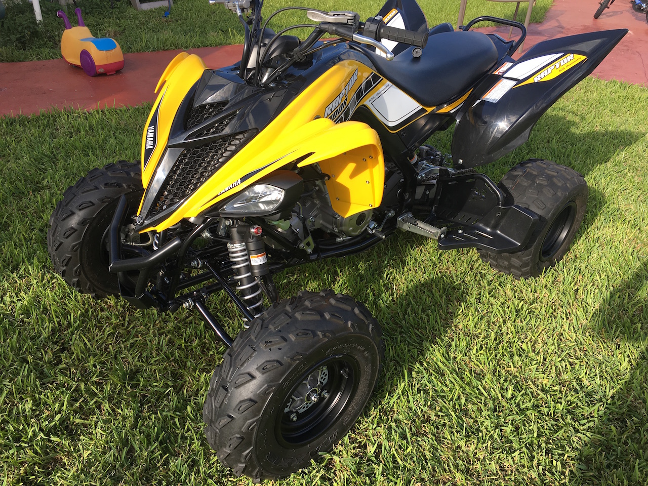 Like new Yamaha Raptor 700. The original tires still have tons of tread left on them. Zoom in on the pics. This bike is clean enough to eat off of.